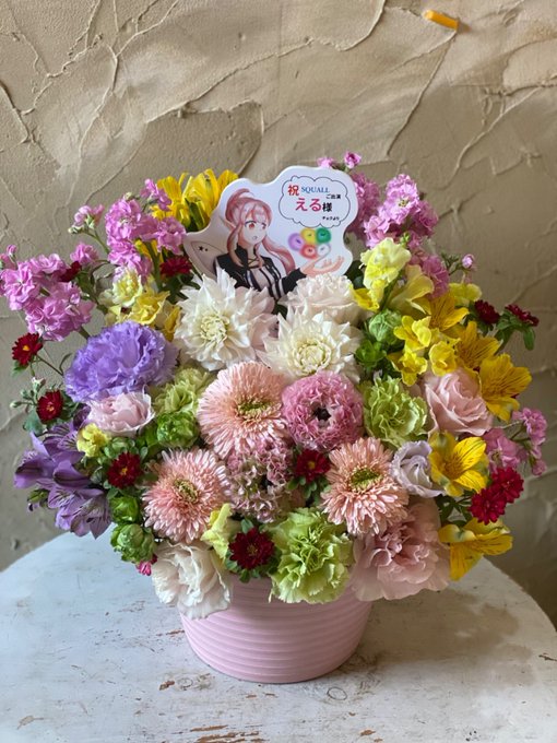 Rain Drops セカンドワンマンライブ SQUALL〜雨ニモマケズ/風ニモマケズ〜 ご出演のえるさんに楽屋花贈らせていただきました! えるえるのピンクをベースに、みんなの色も散りばめてもらいました。 製作:Sakaseru(@sakaseru_jp)牧まゆ実様 #RainDrops #レイドロSQUALL #えるの絵だよ #えるえるあのね