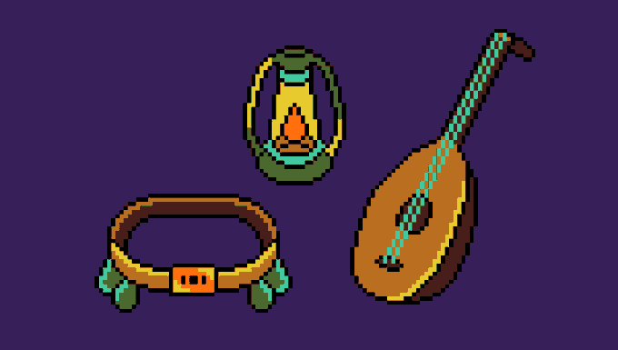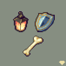 I rolled a 6-3-2, so I drew a Lantern, a Shield, and a Bone #pixel_dailies @Pixel_Dailies #RandomLoot #pixelart