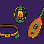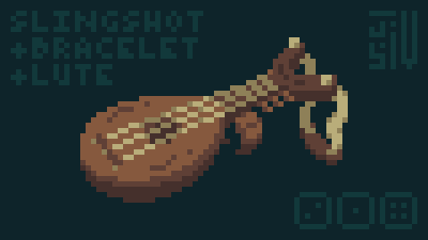 I rolled 2-1-4, which means my #RandomLoot is a Slingshot, a Bracelet, and a Lute. But why settle for hauling around a whole pile of items when you can get them all as a convenient combo device? @Pixel_Dailies #Pixel_Dailies #PixelArt (1354x Streak!)