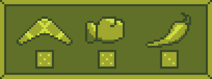 Rolled 5-5-3 on @Pixel_Dailies #RandomLoot theme! That means a boomerang, glove, and pepper. I get why a chest might have a boomerang and a glove, but why a pepper?... #pixel_dailies | #pixelart | #ドット絵