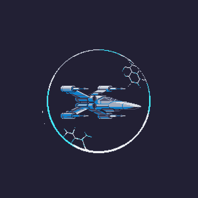 Brand new X-Wing in a force field! 1-2-4 #RandomSpaceshipGenerator @Pixel_Dailies #pixel_dailies #pixelart