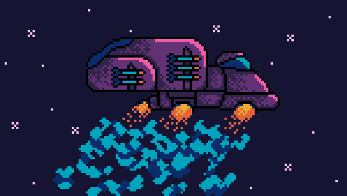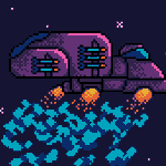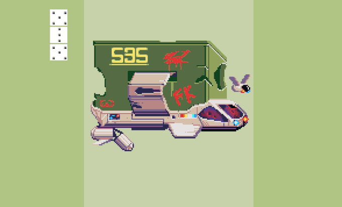 Destroyed Cargo ship with several shields #RandomSpaceshipGenerator for #pixel_dailies Assets and story inspired by the recent game I took part in: Block Force Play and rate! itch.io/jam/brackeys-6… #BrackeysGameJam #res64 by @KerrieLake #ドット絵 #pixel #pixelart #aseprite