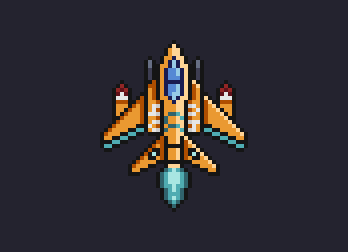 First time designing a spaceship. I rolled 1 + 1 + 3 (New Fighter + Missiles). @Pixel_Dailies #aseprite #pixelart #pixel_dailies #RandomSpaceShipGenerator #ドット絵