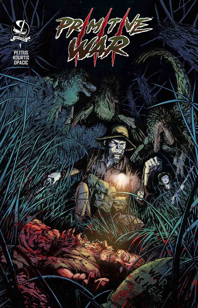 Primitive War Issue 1 - War Is Hell, illustrated by comic co-creator @BabisuKourtis and colored by @maja_colorist #primitivewar #dinosaurs #dinosaurart #paleoart #paleofiction #raptors #utahraptor #comics #indiecomics #comicbooks #comicart #comicbookart #indiecomicbooks