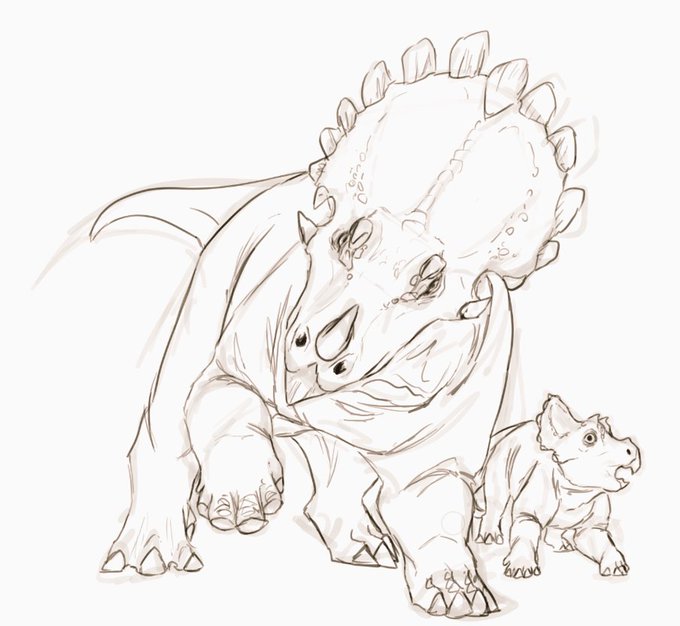 A regalceratops protecting his babbeh and two gay dakotaraptors? Hell yes. #paleoart #dinosaur #dinosaurs #dinosaurart #ArtistOnTwitter #myart #Raptors