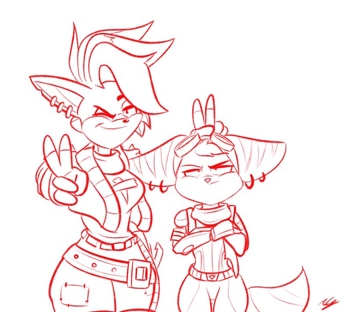 Tawna & Rivet [Sketch]. #CrashBandicootFanArt #Drawing #RivetTheLombax #TawnaBandicoot #Procreate #Artwork #RatchetClankRiftApart