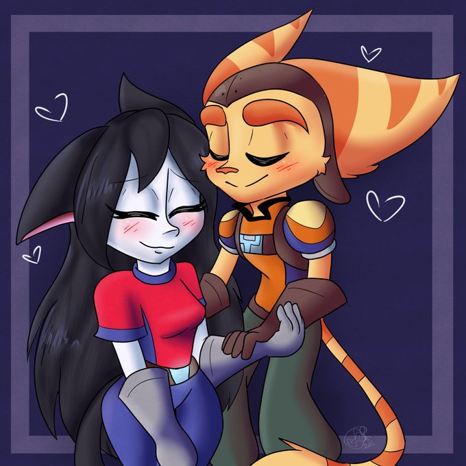 Redraw of one of my 2019 pieces 💕💖 Kat with her lombax husbando 🥺 #RatchetPS5 #RatchetAndClank #Lombax #ArtistOnTwitter