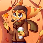 Ratchet enjoying fall season 💖☕️🍂🍁 #RatchetPS5 #RatchetAndClank #lombax #fanart #artistontwitter @insomniacgames