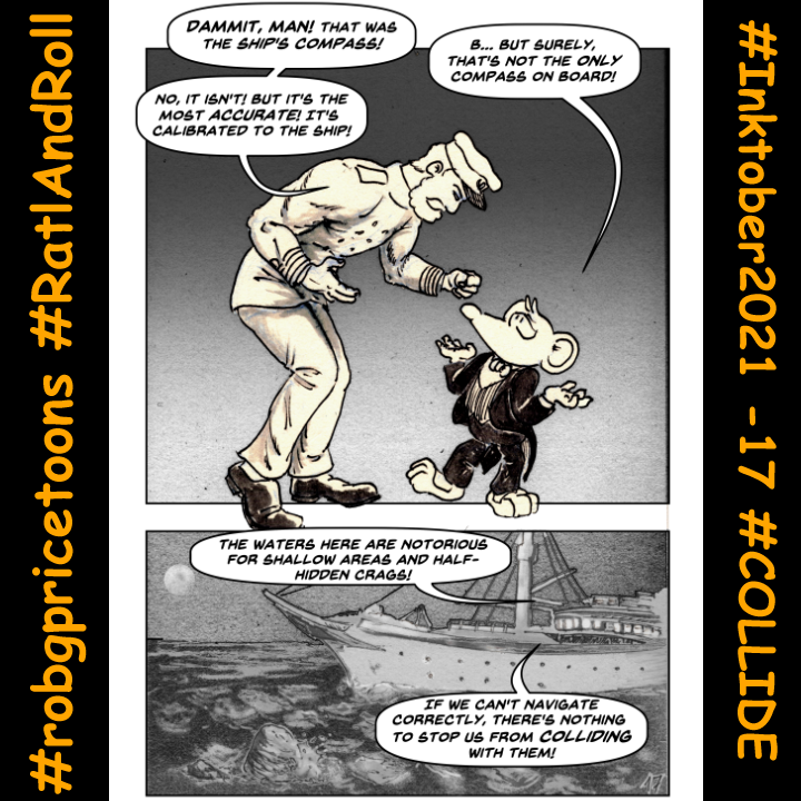 Uh-oh! Looks like the #ship is not the only thing about to collide head-on! #RatlAndRoll #Inktober #inktober2021 #comicbooks #comicart #comicbook #cartoons #webcomic #comicartist #comicstrip #cartoonist #igcomics #penandinkdrawing #comicbookart #indiecomics #characters #webcomic