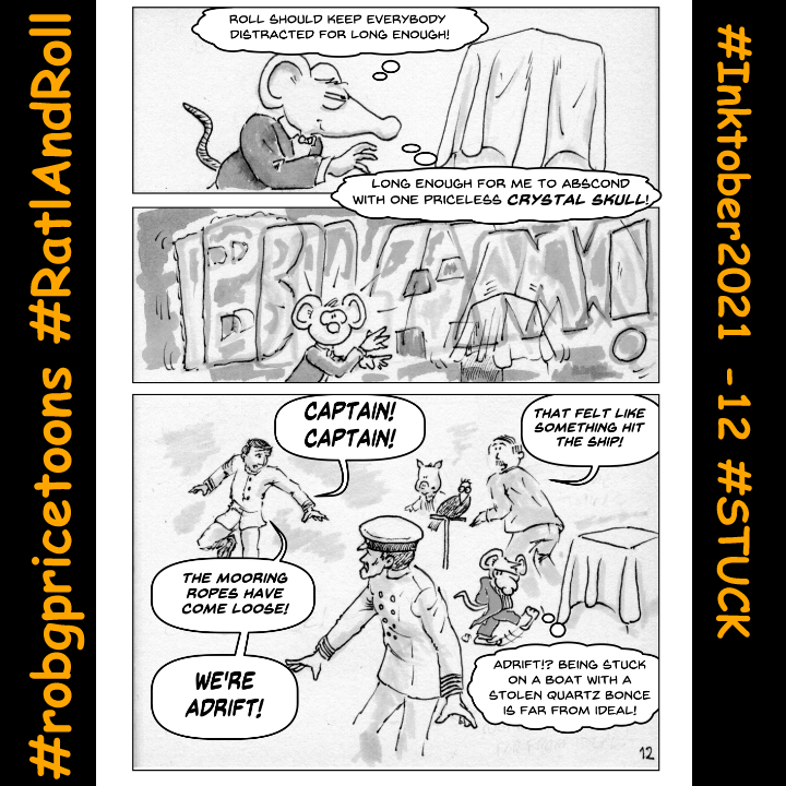 #CaptainMyCaptain Uh-oh! Trouble's afoot - especially when you didn't pack for a sea voyage! #STUCK on a boat with #RatlAndRoll - judging by what's happened so far in this #Inktober #prompt driven story, some days it's best just to stay in bed! Thanks to yesterday's retweeters!