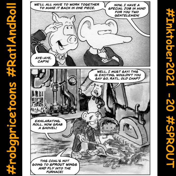 Noooo!!!! I tweeted yesterday (quite late) to post my #Inktober page... and I forgot to include the picture!!! Doh!!! #inktober2021 #RatlAndRoll #Boilerroom #sprout