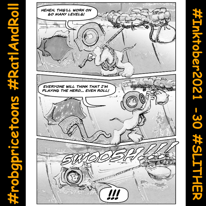 I admit defeat - I was kinda beat last night (although I did manage to do the inks) so here is the page for day 30 of #RatlAndRoll #Inktober2021 - Will I succeed in finishing one more page today? Stay tuned!! Also, a msg to @LukeStoneStudio, get well soon, buddy! #indiecomics