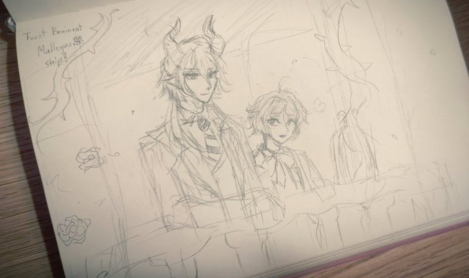 ⚠️ Yuu with a face, Malleyuu "A meeting in the garden" ✨.• 🐉🌸 .° ✨ [ #twstプラス #RayArt2022 #malleyuu *made this back in March* ]