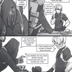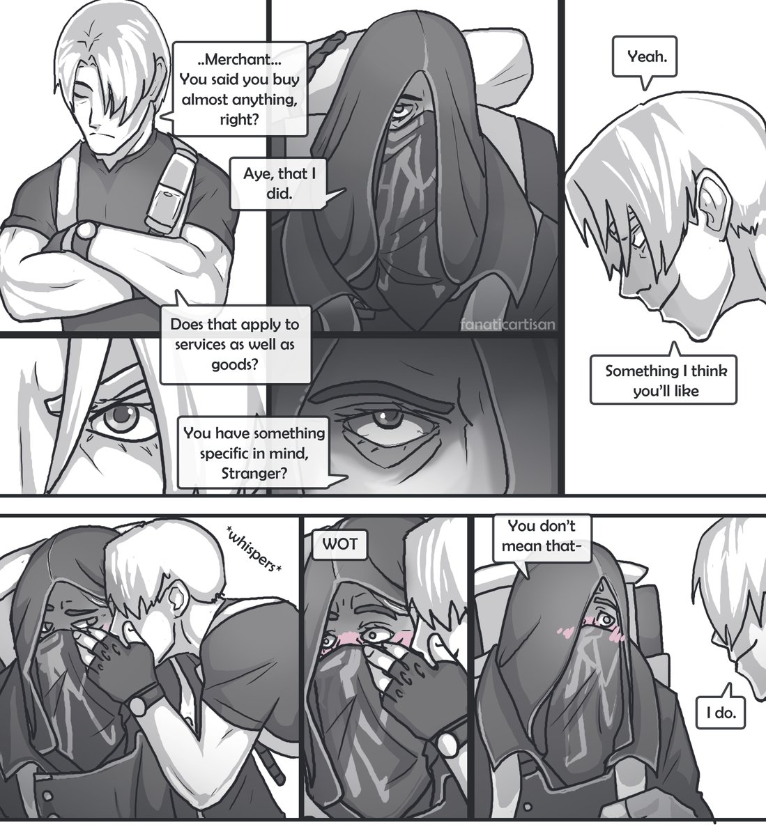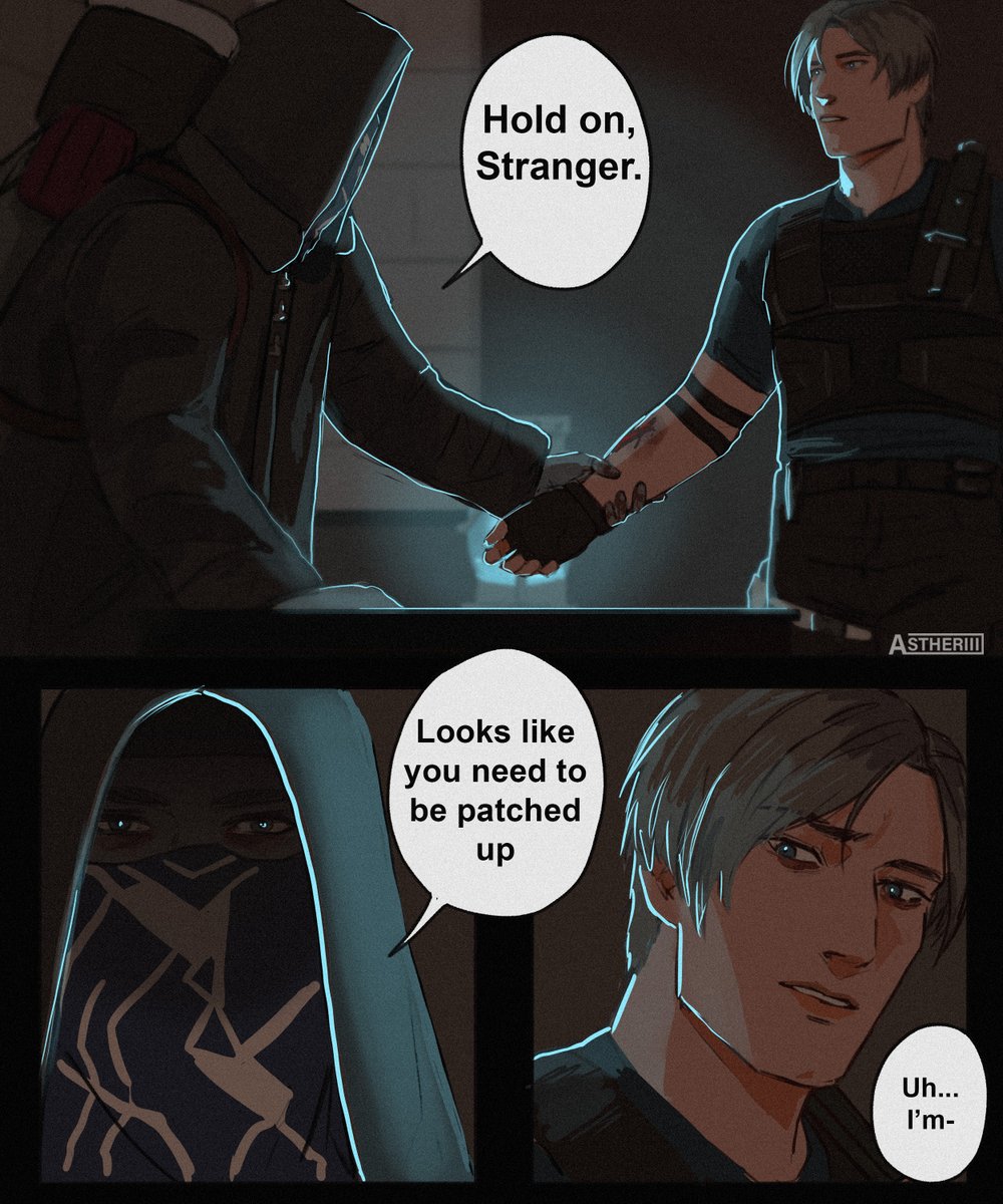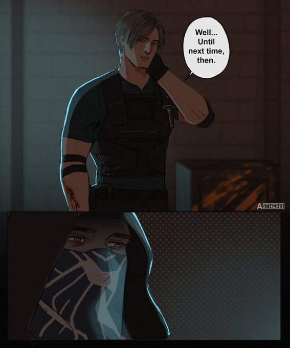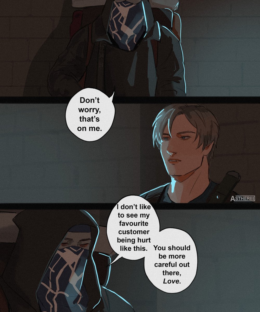 You hold so much tension in your neck, Stranger... (The Merchant repaying the favor from last time-!) #re4 #leonkennedy #merchant #merchantleon #residentevil #fanart #re4remake