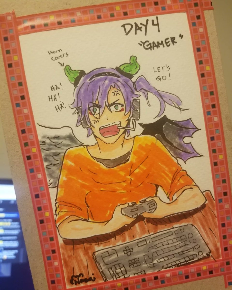 Day 4 "Gamer" "LETS GO 24 MAN RAID!!" #nazaidraws #INKTOBER2022 #ARTOBER2022 #VTUBER #REALITYTOBER #REALITYAPP