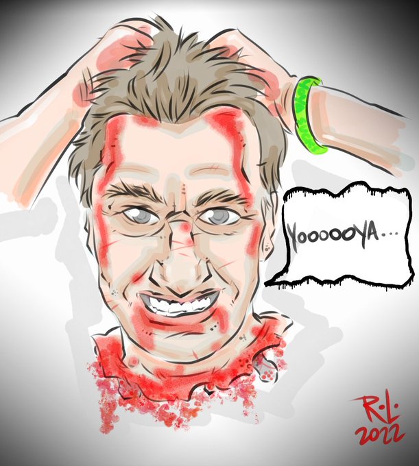.@Tony_Deppen having a bad Re-Animator kinda day. It's probably @theonlyoya's fault, too. #prowrestling #fanart #reanimator #artwork #drawing #AEW