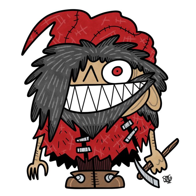 SCOTTOBER DAY 13: Redcap Redcaps are mine dwellers. Their hats and clothes are dyed in their preys blood so that the smell of copper can help them blend into their surroundings #scottober #inktober #scottish #mythology #legends #scottishmythology #scottishlegends #monster #redcap