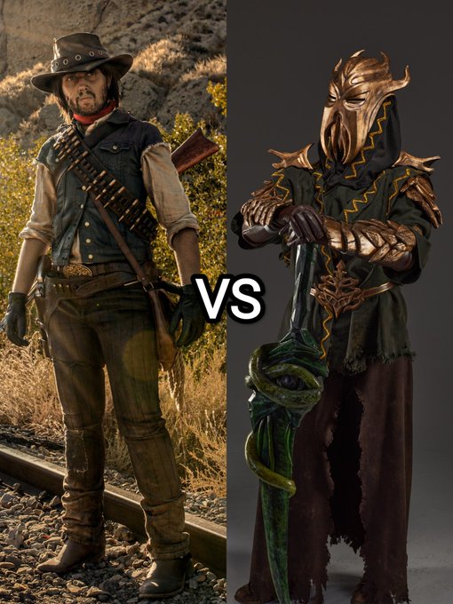 Muchos de vosotros me habéis dicho que mi cosplay de Miraak o Marston es el mejor que he hecho, pero es hora de saber cuál de los dos es mejor 💪 Así que, ¿cuál os gusta más? Os dejo la encuesta en el hilo! #miraak #johnmarston #cosplay #skyrim #RedDeadRedemption