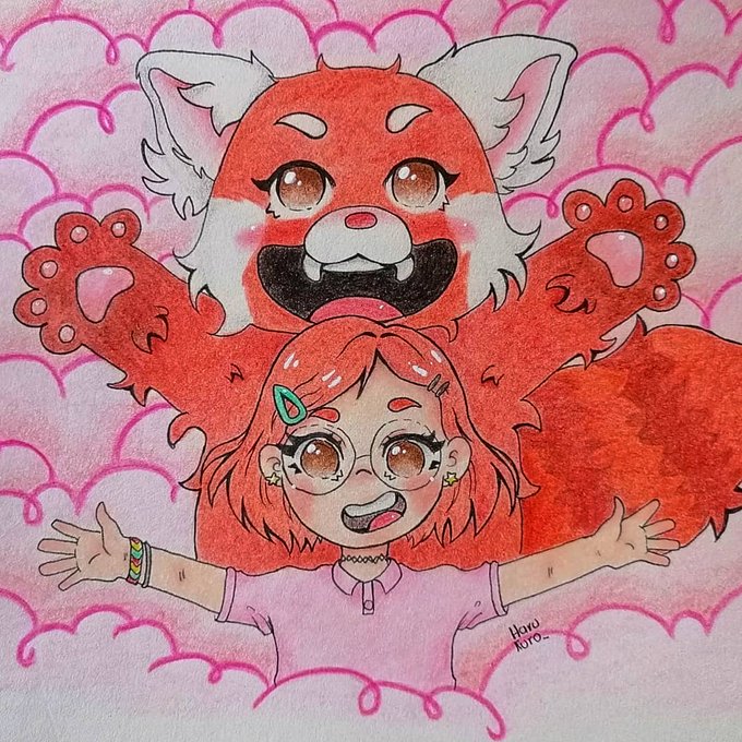 hey :''0, Turning red is so cute ❤️ I teared up a little. I loved the colors and the music too much, they feel very soft. I didn't wait to draw something. We need a red panda emoji. 🐼🦊 #TurningRed #RedPixar #meilinLee #TurningRedfanart