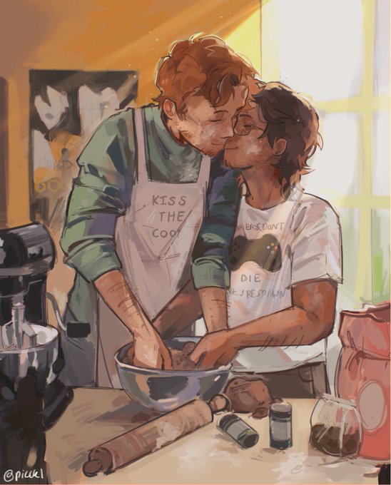 They’re baking cookies together in a completely canon-typical happy setting Yep #redvalleyfanart #redvalleypod