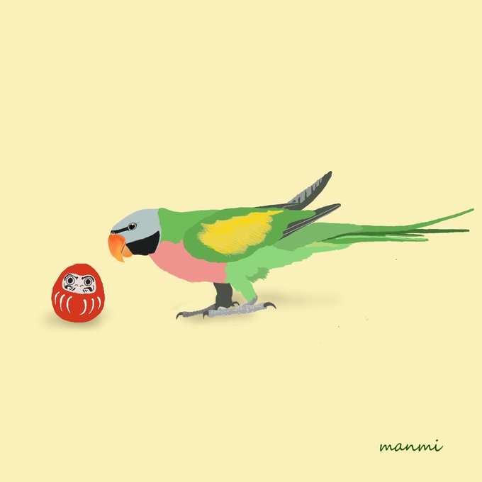 初夢でダルマさんを見ると良い一年になる⁉との噂☺️✨ 2023年が素敵な1年になる事を祈って 『ダルマの森』からスタート❣ 本年も宜しくお願いします🥰 #ダルマインコ #Psittaculaalexandri #RedbreastedParakeet #Parakeet #bird #illustration #お絵描き #イラスト