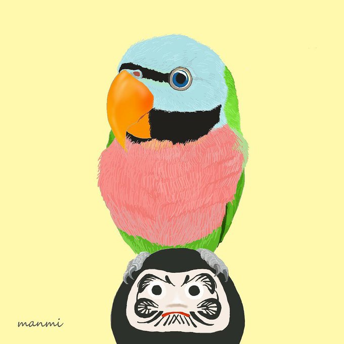 2022年6月10日から始めたお絵かき🎨 描きおさめは、やっぱりダルマさん❣ 来年もよろしくお願いします☺️ #ダルマインコ #Psittaculaalexandri #RedbreastedParakeet #Parakeet #bird #illustration #お絵描き #イラスト