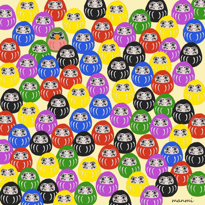 ダルマインコのダルマを探せ❣ 子供は瞬時に発見😱 取りあえずダルマ制作が大変過ぎて😂 デジタルだと、コピー出来て本当助かった🤣 これハンカチにするかな😊 #ダルマインコ #Psittaculaalexandri #RedbreastedParakeet #bird #illustration #お絵描き #イラスト #お絵描き練習 #毎日お絵描き