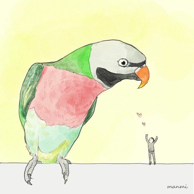 おはようございます🌞 良い週末を~ #ダルマインコ #Psittaculaalexandri #RedbreastedParakeet #Parakeet #bird #illustration #お絵描き #イラスト #お絵描き練習 #毎日お絵描き