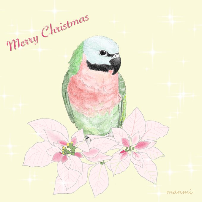 クリスマスシリーズ🎄🧑🏻🎄 司礼さまのダルマインコちゃんをモデルに描かせて頂きました🙏🏻 #ダルマインコ #Psittaculaalexandri #RedbreastedParakeet #Parakeet #bird #illustration #お絵描き #イラスト
