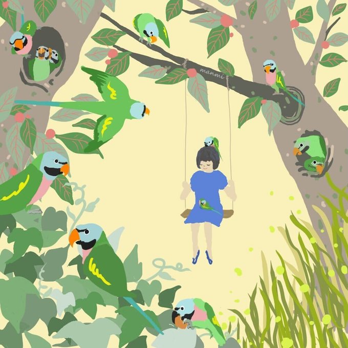 行ってみたいな~♪ダルマの森☺️ #ダルマインコ #Psittaculaalexandri #RedbreastedParakeet #Parakeet #bird #illustration #お絵描き #イラスト #お絵描き練習 #毎日お絵描き