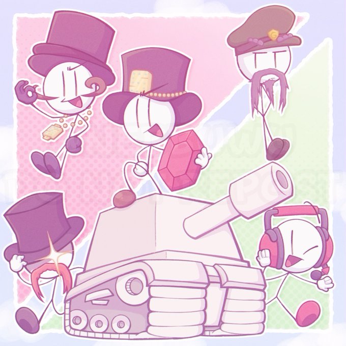 Happy 10th anniversary to Infiltrating the Airship! To celebrate, here's art I did with characters who first debuted in the game, with a little Henry there as well!! #HenryStickmin #HenryStickminFanart #CharlesCalvin #ReginaldCopperbottom #Art