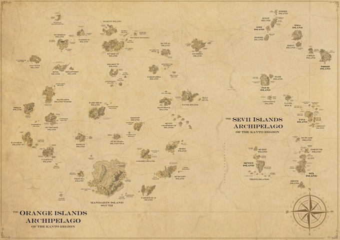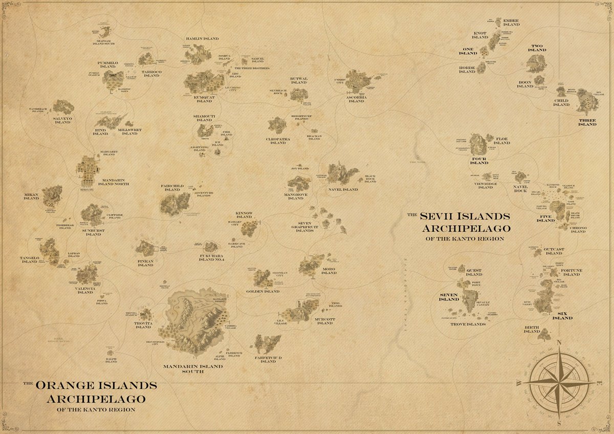 The Orange and Sevii Islands. It is compiled of places from the games, the anime, the manga, and my own universe. #Pokemon #PokemonZoology #JoshuaDunlop #map #Fantasymap #Fanartmap #kantomap #Region #Kantoregion #Orangeislands #Seviiislands #orange #sevii