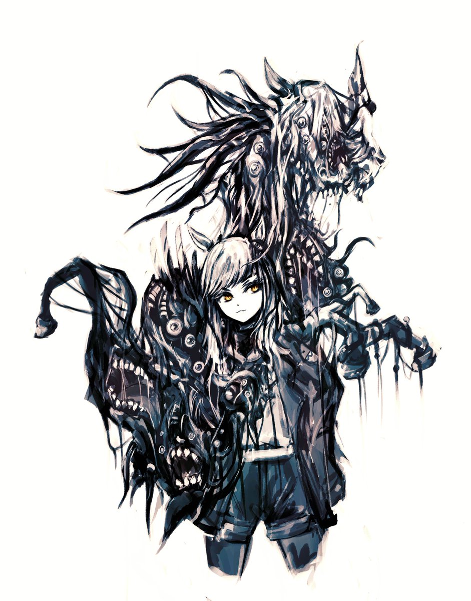 [Official Art Collab with @Reina_Noi ] Day 15 of #100日チャレンジ We did an official art collab!! We drew horror-themed Reina. She did the composition (kinda), I did the details and she colored it after LOL it was pog (Reina wrote this 🤭) Color ver. in comments #ReinaFanart