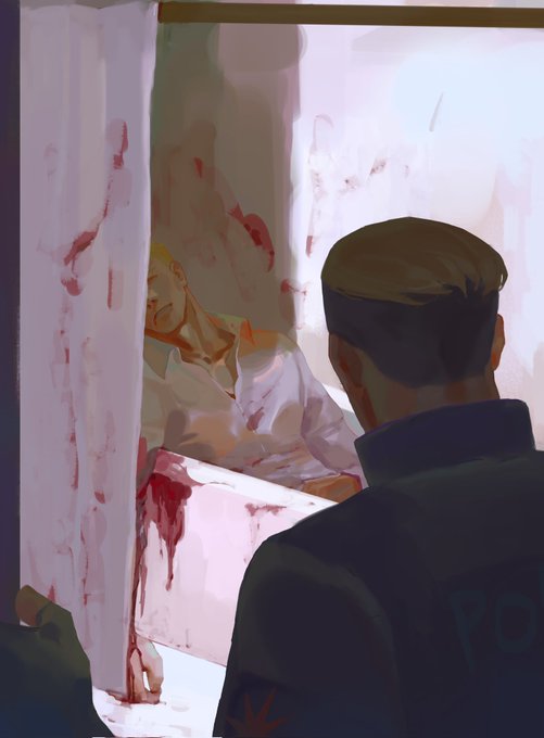 The sheriff pushed open the bathroom door and found him lying in the bathtub. He died, died with a smile. #gallirei #reinerbraun #porcogalliard