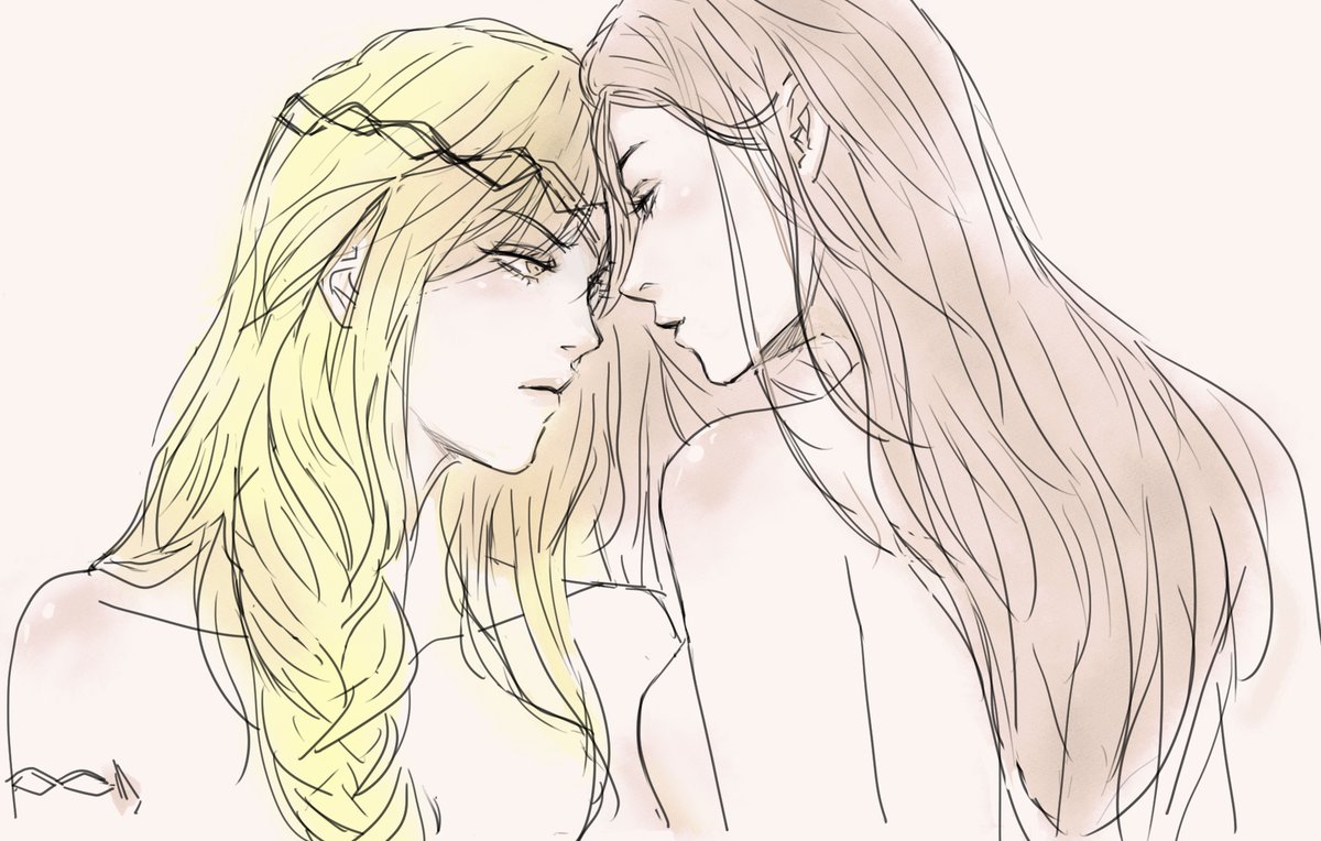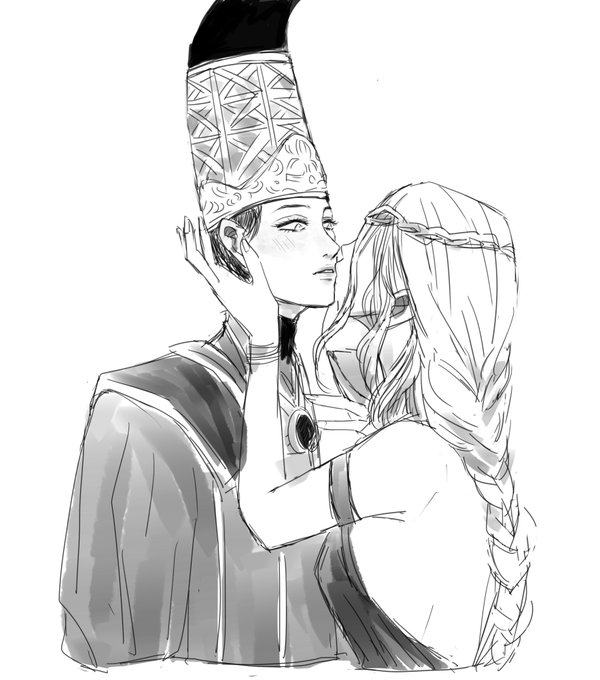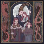 "The young astrologer gazed at the night sky as she walked. (...) Then she met the full moon - and, in time, the astrologer became a queen." Queen Rennala with her children, Ranni, Radhan and Rykard. #eldenring #fromsoftware #Rennala #Ranni #sketchbook #fanart