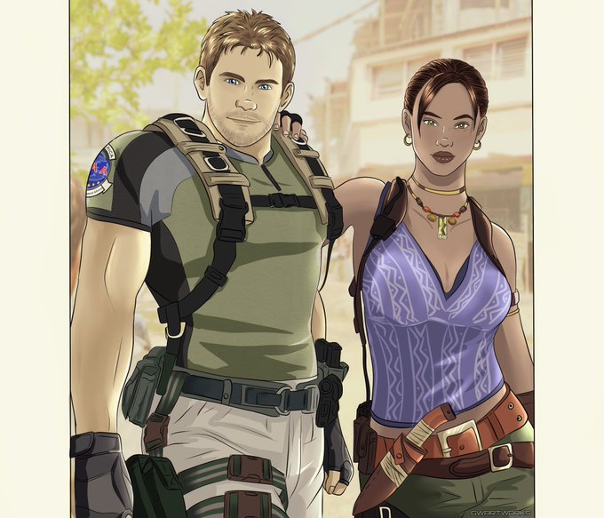 I had this idea for a few days now and thought of drawing the two here XD 💕 Also one of the requested ship on IG ❤️ #ResidentEvil #residentevil5 #fanart #JillValentine #ChrisRedfield