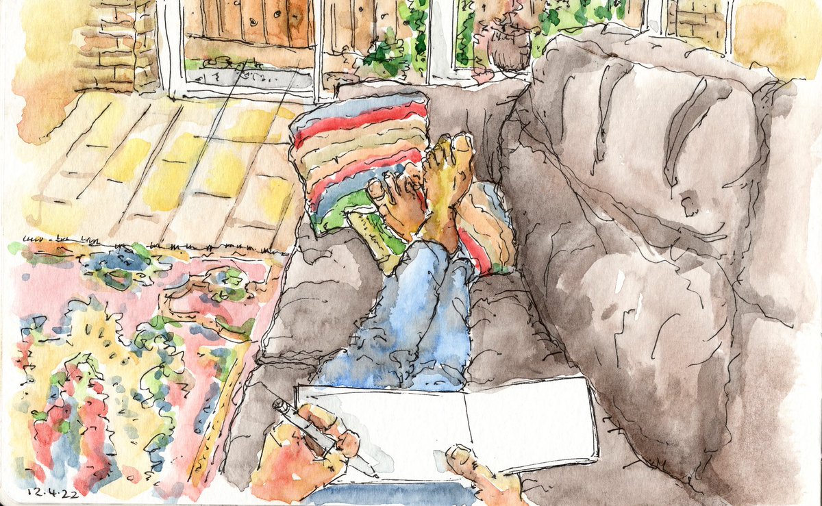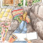 Well deserved rest after a day of DIY in the bathroom. #illustration #selfie #artjournal #sketchbook #art #sketch #drawing #ballpoint #ajoto #watercolour #conservatory #sofa #resting