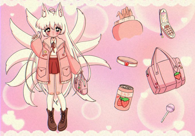 Did a reference sheet for myself ❤️🤍 I wanted to go for a purple but it just didnt fit right ;; #90sanimestyle #artshare #ArtistOnTwitter #commissionsopen #retroanime #90sanime