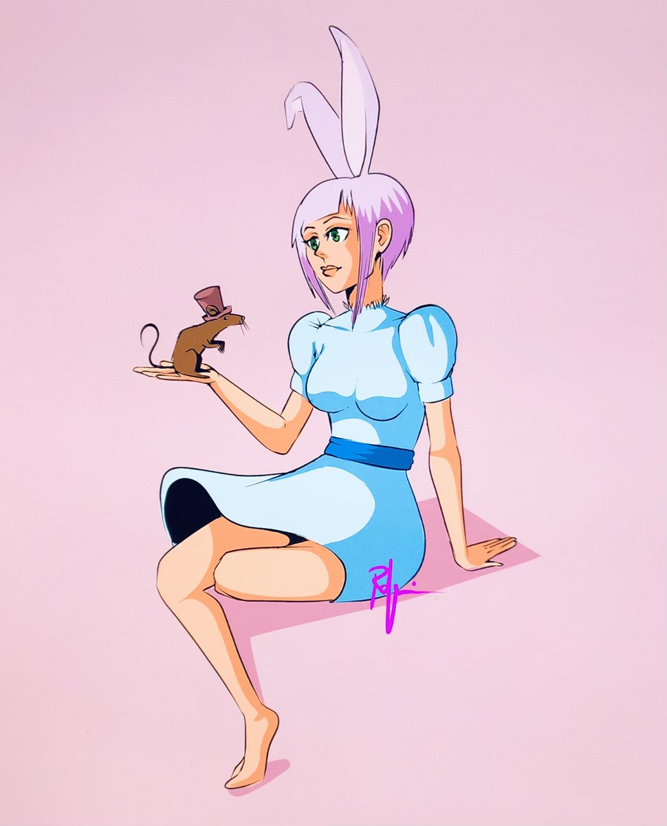 When Jefferson Airplane’s 1967 White Rabbit played, this image popped in my brain. A mod twist on Alice with grown rabbit ears asking the Dormouse what to do? “Feed your head.” He says. #Retrovember #Retrovember21 #AliceInWonderland #retroartist #digitalart #Retrovember2021