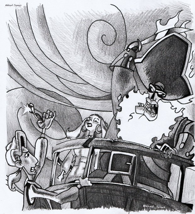 My pencil ✏️ drawing of Guybrush Threepwood, Governor Marley and Le Chuck! Arrrrr! Drawn in 8B pencil and black fine liner. 8”x8” #ReturnToMonkeyIsland 🦜 🧵 1/3…