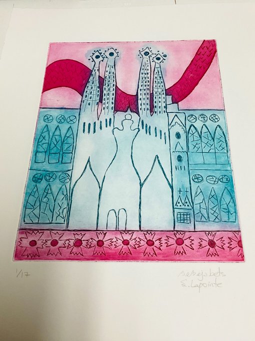 Day 1 #Retweet #ArtAdventCalendar #ArtShare « Thank you Senyor pour #Barcelona » #Etching #Prints #SagradaFamilia #Spain #printmaking By © 2022 #Bebejabets S. Lapointe #CanadianArtist #Originalart #CanadianArt #Canada #Gallery #Artwork #ArtLovers #Art #ArtMarket #Exhibition