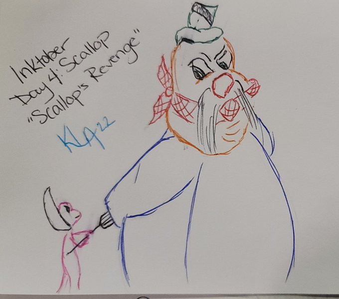 My take on #inktober2022 Prompt 4: Scallop, with French Chef Leroy Moreaux as the victim. #inktober #inktoberscallop #drawing #scallop #cartoon #shellfish #mollusc #chef #france #french #attack #antics #cook #food #seafood #revenge #leroymoreaux