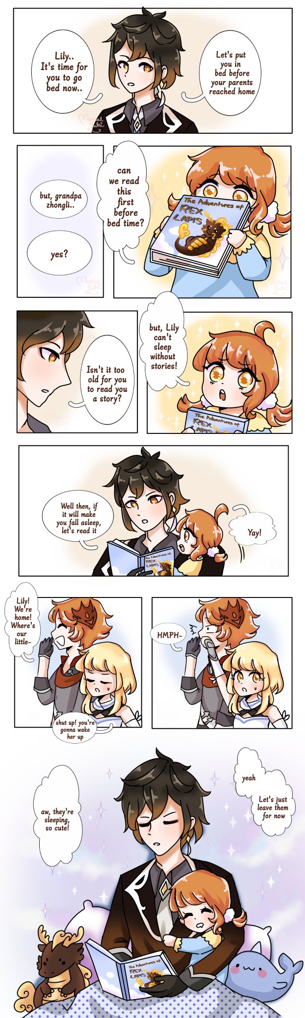Sleep well, Grandpa Zhongli and Lily #zhongli #childe #LUMINE #GenshinImpact #genshinimpactfanart #chilumi #RexLapis #tartaglia #genshinimpactcomic