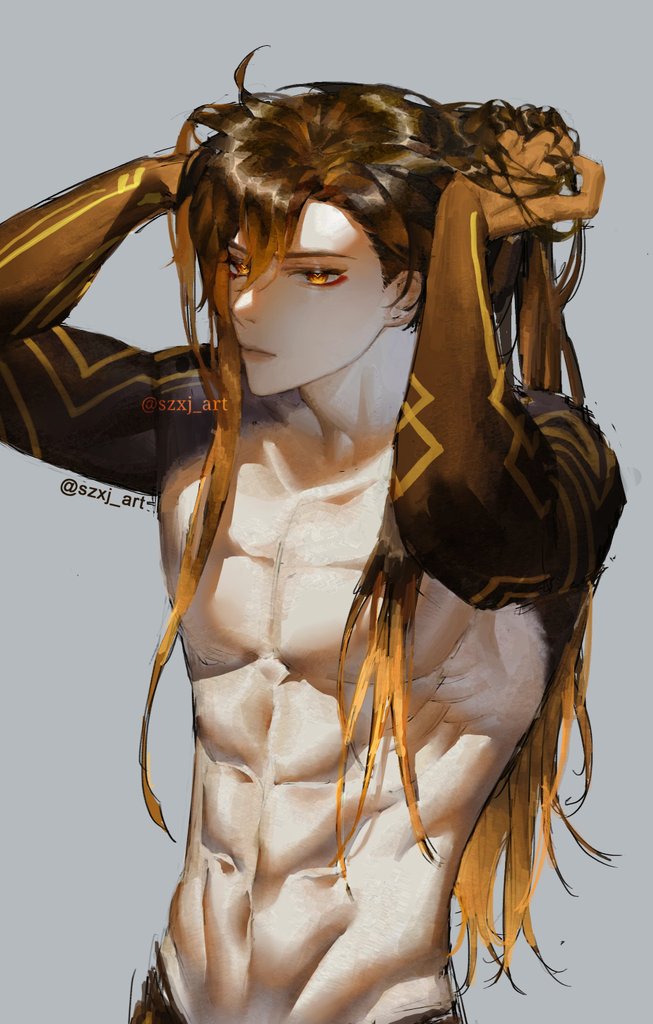 I'd say it's just an anatomy study but we all know that's a lie #genshinimpactfanart #GenshinImpact #zhongli #Morax #RexLapis #原神