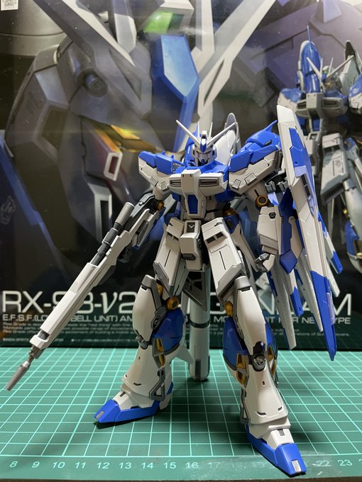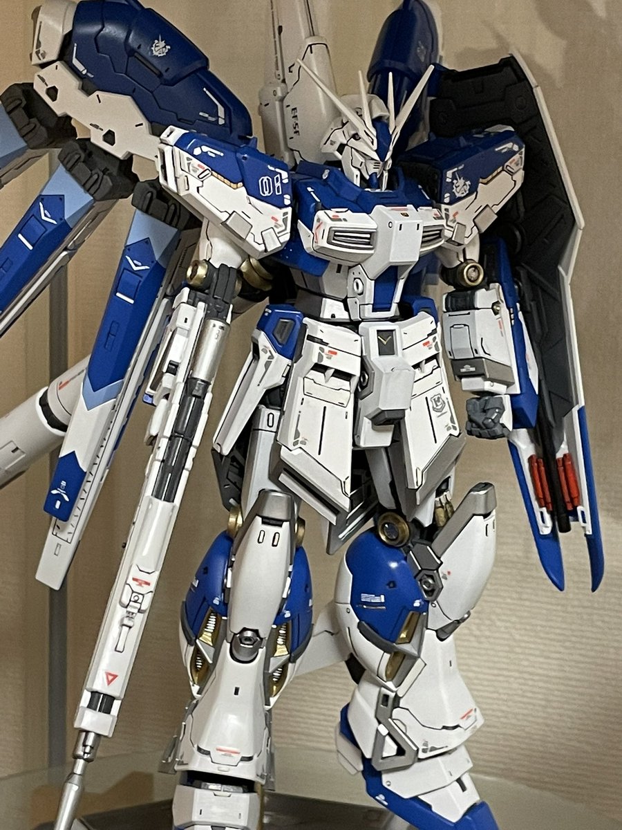 #RGHiνガンダム 完成となりました。今回のRGの為にまたプロポーション、カラーリングもアレンジされましたが、もうこれ以上のHi-νの立体物はないのでは?と思うほどのカッコよさだと思います。今回は自分なりに塗り分けもしましたが、キット準拠のまま仕上げてもよかったかもです。 #ガンプラ