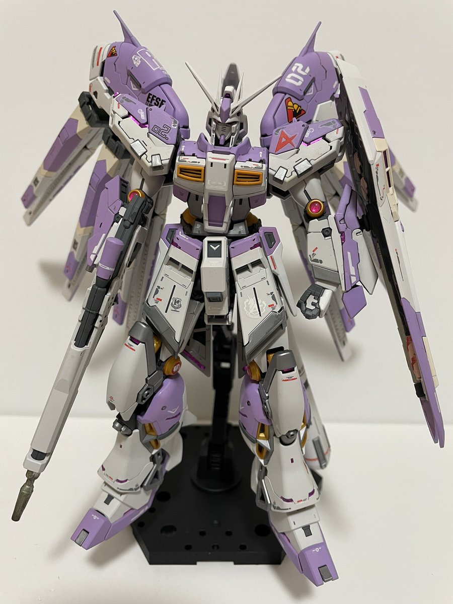 #プラモデル #プラモ #ガンプラ #ガンプラの画像を貼るとRTされると聞いて #RGhiνガンダム RGのHi-νガンダムにνガンダム用HWSを改造して取り付けた上に、ハイパーメガバズーカランチャー持たせた 『Hi-νガンダム/HWS H.M.B.L.装備型』 がここに誕生しました😌 塗装だけで40時間ほどかかりました😅