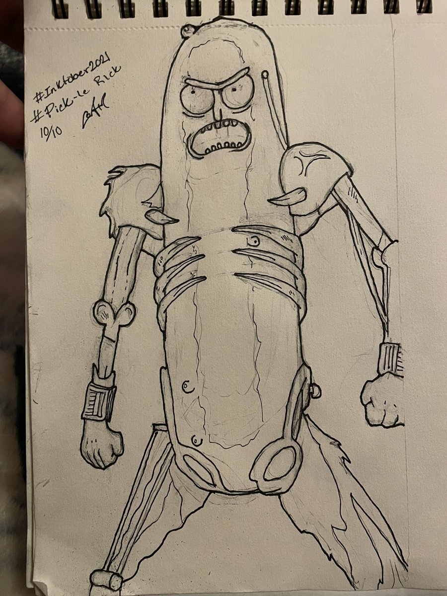 Day Ten: Pick-le Rick #inktober2021 #inktober #Pick #picklerick #rickandmorty #pickle #rick #inkdrawing #micronpen #art