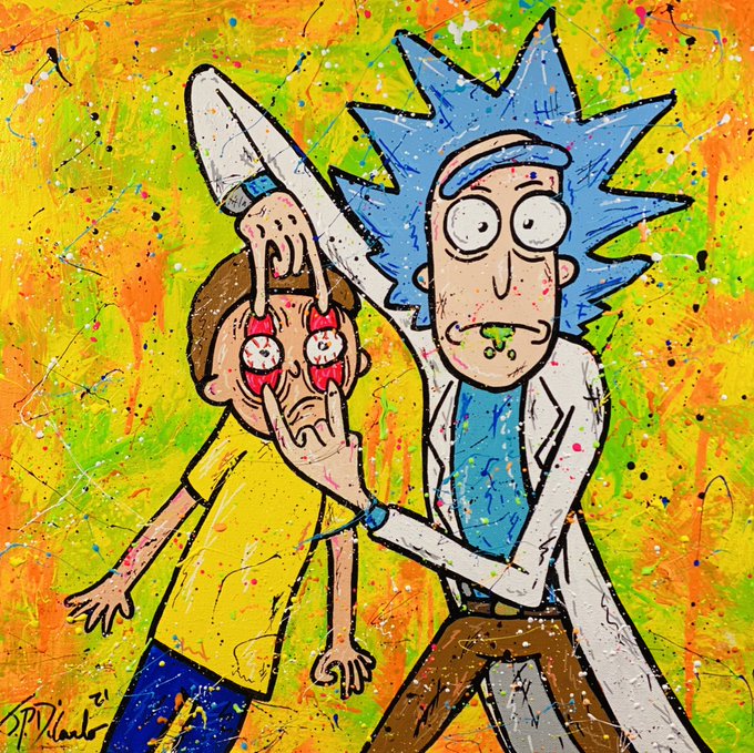 Wet paint!!! New Rick and Morty piece is drying!!! But wait there’s more!!! This will be the 1st piece I will be doing embellished canvas prints so stay tuned!!!! #rickandmorty #rick #morty #adultswim #cartoon #fanart #popart #pop #art #artwork #artist #wakeupyourwalls #wetpaint