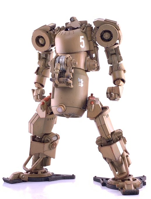 Ⅲ号人型重機の塗装が終わりました。今回は「ゲート跡は塗装だけで誤魔化せるか?」をテーマに作っています。確かによく見れば分かりますが、汚してしまえば全然気にならないですね。時間が無い時はこれで良いかも?? #人型重機 #Riesen_Panzer #キャビコ