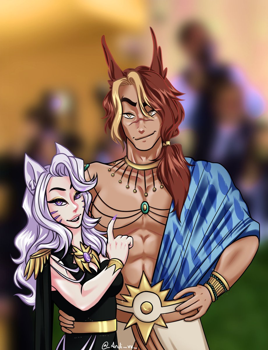 ¡Dos apuestos vastaya se han robado las miradas de las cámaras durante la alfombre roja! 👀 #RiftGala #Ahri #Sett #Settahri #LeagueOfLegends #LeagueOfLegendsFanArt #ArtofLegends